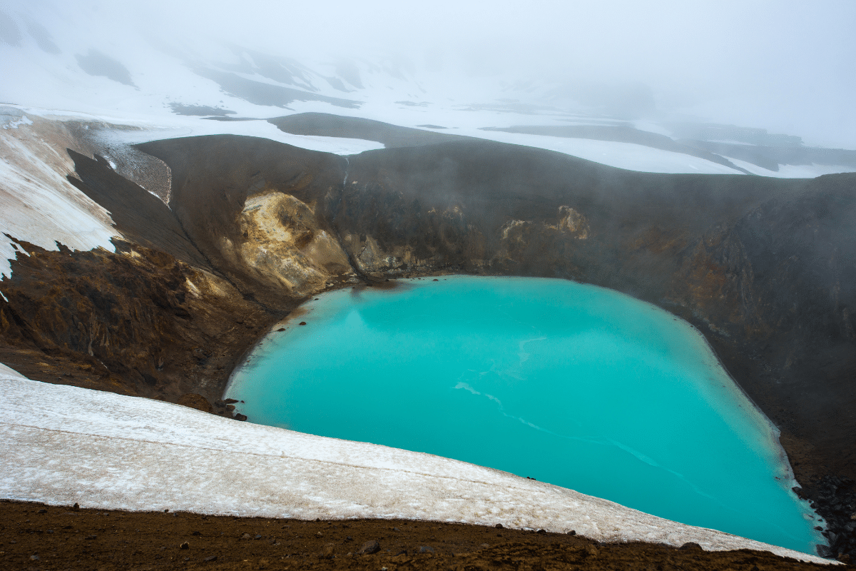 – Askja – potężny wulkan z kraterem Viti, gdzie można kąpać się w ciepłej, mlecznej wodzie.