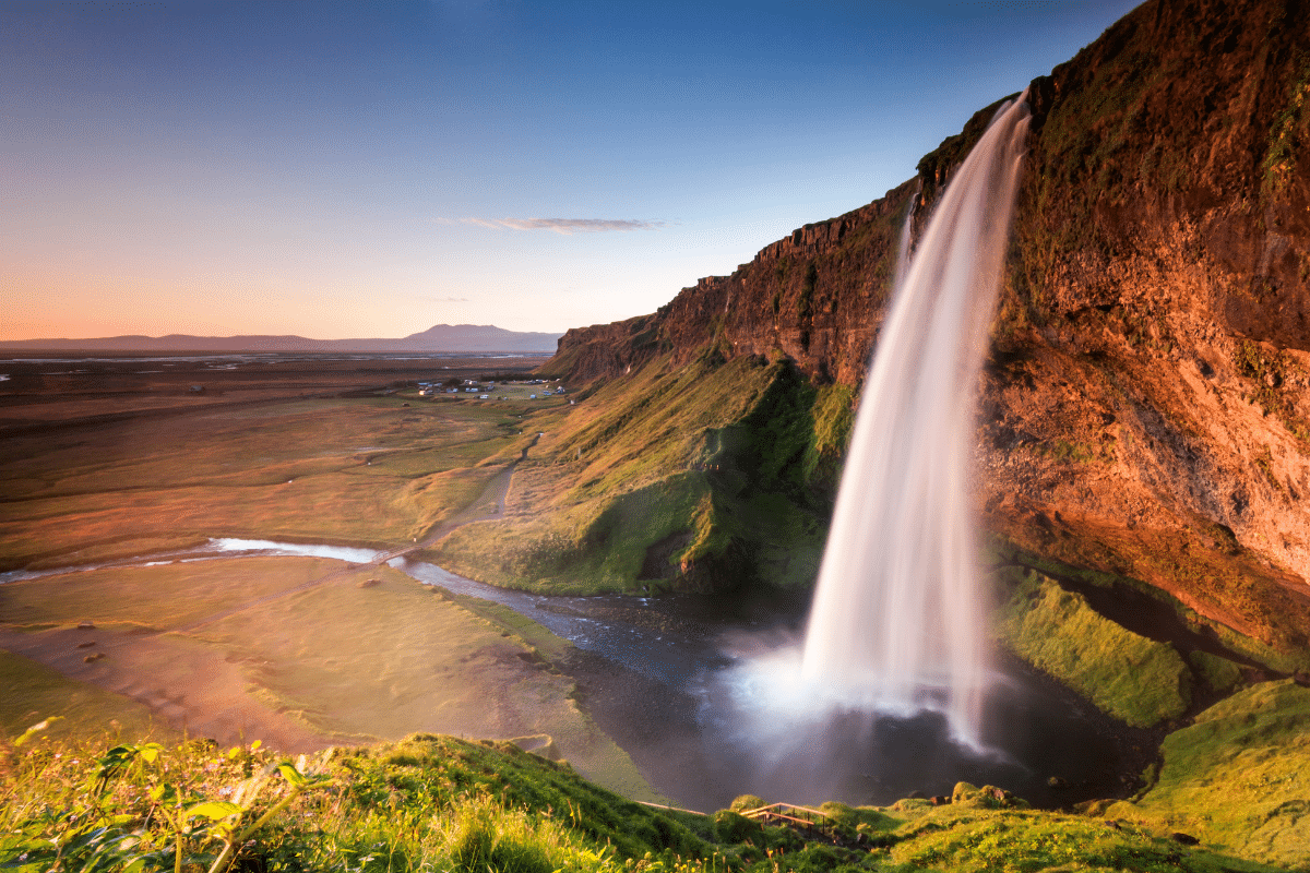 Seljalandsfoss to wodospad o wysokości ok. 60 metrów, który spada ze skalnej półki tworzącej dawną linię brzegową Islandii. Jego wyjątkowość polega na tym, że można przejść za ścianą wody – wyznaczona ścieżka prowadzi do wnętrza niewielkiej groty, skąd rozpościera się widok na otaczającą dolinę przez zasłonę wody