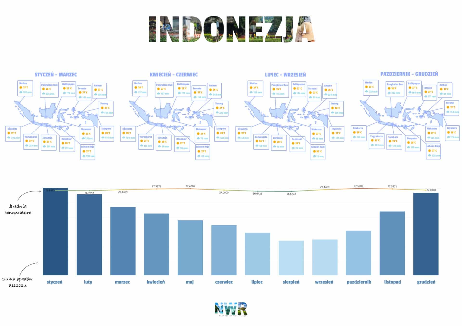 Ze względu na swoją rozległość geograficzną, klimat oraz atrakcje turystyczne różnią się w zależności od miejsca. Kiedy lecieć do Indonezji? Wybór najlepszego czasu na wizytę w tym egzotycznym kraju zależy od wielu czynników, w tym od tego, co chcesz tam robić i zobaczyć. Generalnie Indonezja jest krajem całorocznym, należy tylko odpowiednio dobrać region i aktywności.